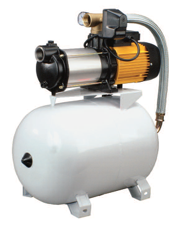 Grupos hidroneumáticos para el suministro automático de agua a presión. Compuestos de electrobomba, acumulador horizontal de membrana,